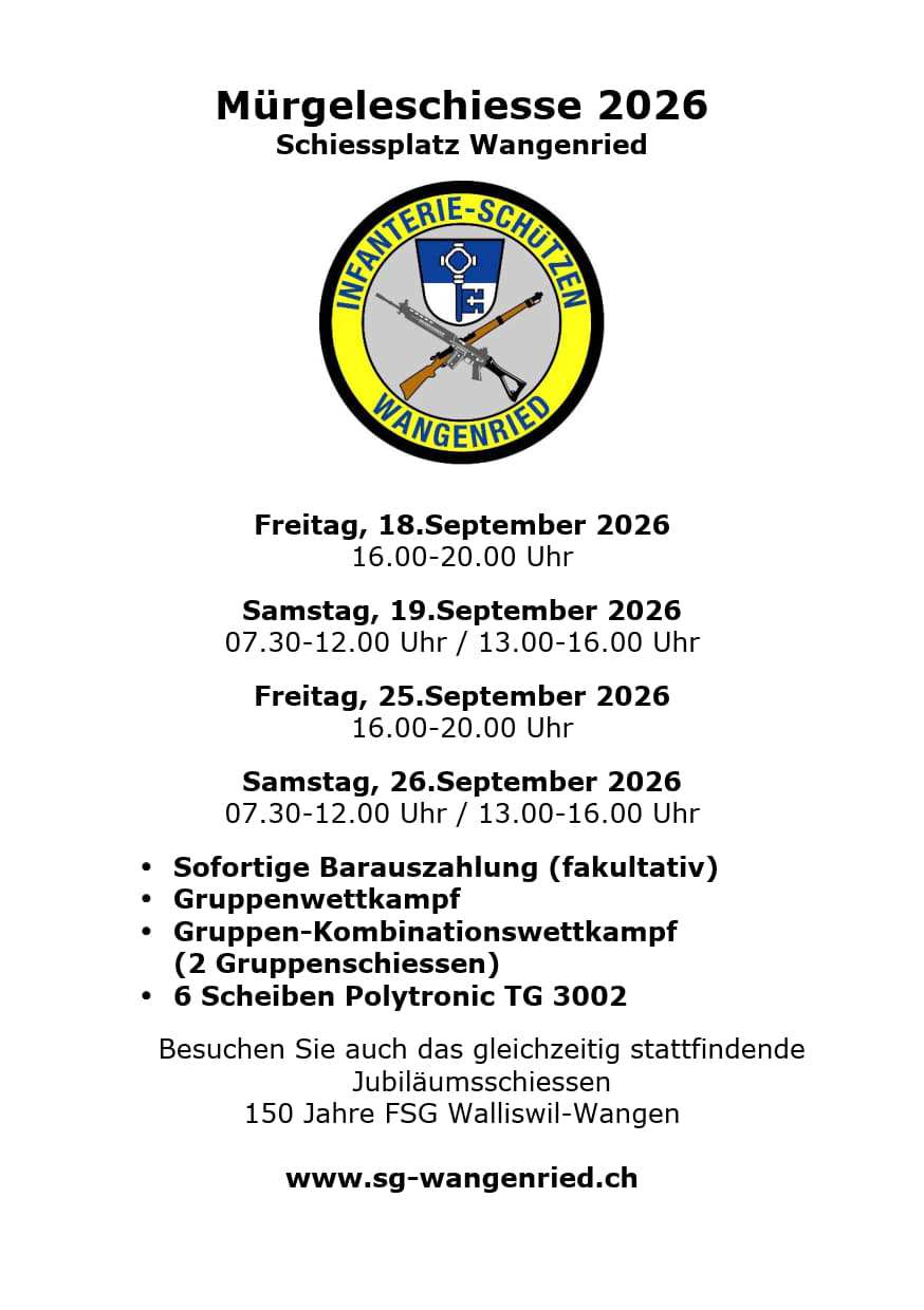 Besuchen Sie auch das gleichzeitig stattfindende Jubiläumsschiessen 150 Jahre FSG Walliswil-Wangen